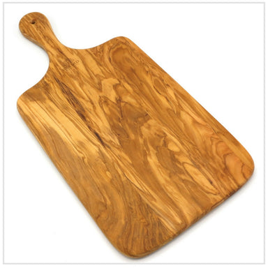 Warm Olive Wood Cutting Board with long handle. Tradtional styling. Works as a presentation board for servings or in the centre of the table. Each ...